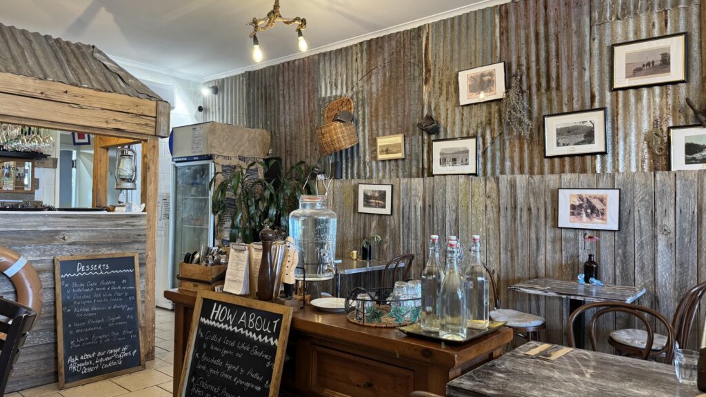 Nachdem wir uns in Lakes Entrance im Hotel eingerichtet hatten, sind wir noch über den Fussgängersteg auf die vorgelagerte Sandinsel spaziert, wo sich auch der Lakes Entrance Beach befindet. Das Nachtessen, natürlich Fisch, haben wir dann im stilvoll eingerichteten Restaurant «Sea Shanty» eingenommen.