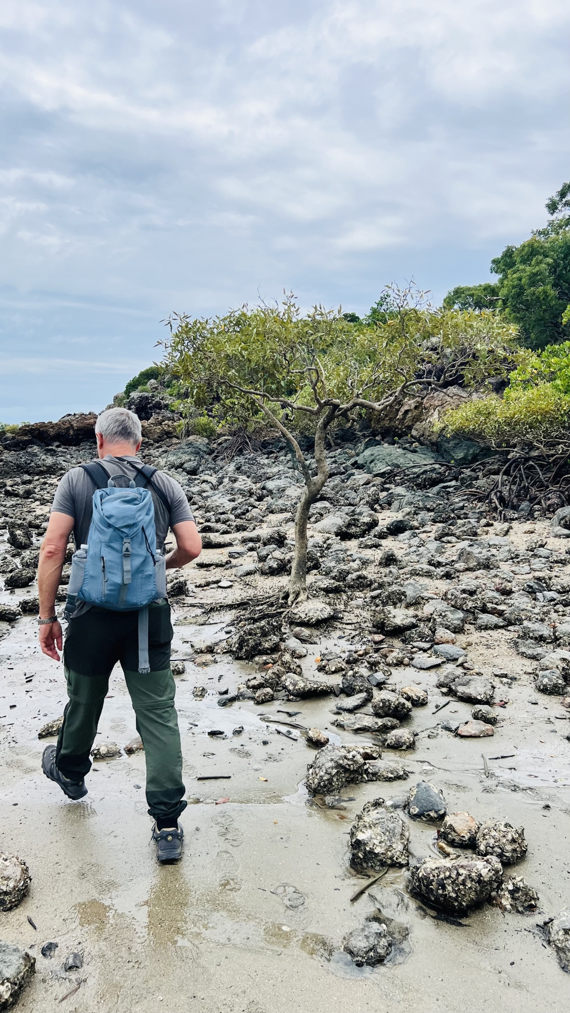 Der Tag begann heute eher frisch und mit leichtem Regen, aber das passte ganz gut, da uns eh nicht so nach Baden zumute war. So fuhren wir in den 45 Autominuten entfernten Cape Hillsborough National Park, um wieder mal einen Trail zu begehen. An dem Sandstrand dort könnte man frühmorgens auch Känguruhs und Wallabys beobachten, aber so verzweifelt waren wir dann doch wieder nicht 😅