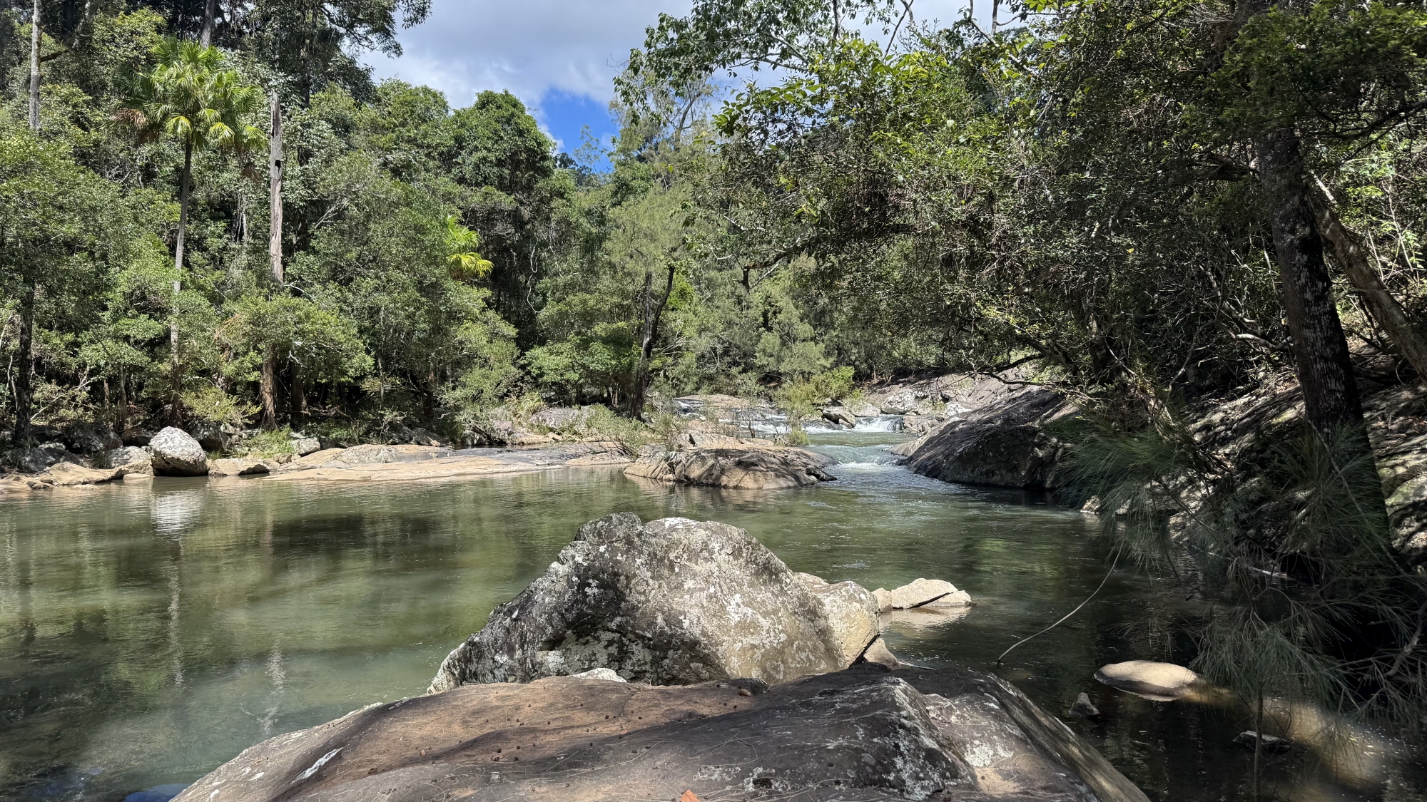 Vom ersten Aussichtspunkt aus sieht man auf die ganze Talebene und die 'Passstrasse', welche wir zuvor befahren haben. Danach fahren wir weiter zum Broken River Fluss. Dort soll es auch Schnabeltiere haben. Nachdem wir auf unserem Walk einem nicht gerade kleinen Buntwaran (Lace Monitor) begegnet sind, haben wir uns dann auch Zeit genommen, am Broken River nach eben diesen Schnabeltieren Ausschau zu halten. Die Schildkröten waren heute ziemlich offensichtlich zu sehen, aber wir hatten Glück und durften wirklich auch einen Platypus beobachten.
